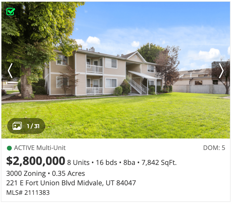 Rare 8-Plex Investment Gem! An amazing opportunity that truly embodies "location, location, location." This property makes it easy to attract and keep quality tenants. Each unit features 2 bedrooms, 1 Jack & Jill bath, a spacious living room, large kitchen, laundry room, and patio storage. Property offers open green space and covered parking. Close to all the city has to offer, including ski resorts, schools, parks, shopping, dining, and public transit.