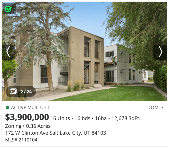 ASSUMABLE FINANCING: 16 Plex in eastern Marmalade district. High growth area with amazing walkability to local restaurants and amenities. All units are updated and property is professionally managed and maintained. Exterior recently renovated with modern features. Don't miss this opportunity to owner a turn key investment in Salt Lake City. # of Units 16 Current monthly Income RENT $22,169 Other Monthly Income $1,960 Total Possible Annual Income $289,548 Price per Door $243,750 Inquire about amazing ASSUMABLE financing on this property.