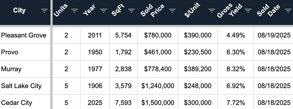 Murray Duplex Sells for $389k/Unit; Seller Finance 20-unit Listed; DOM Continues to Climb in Utah